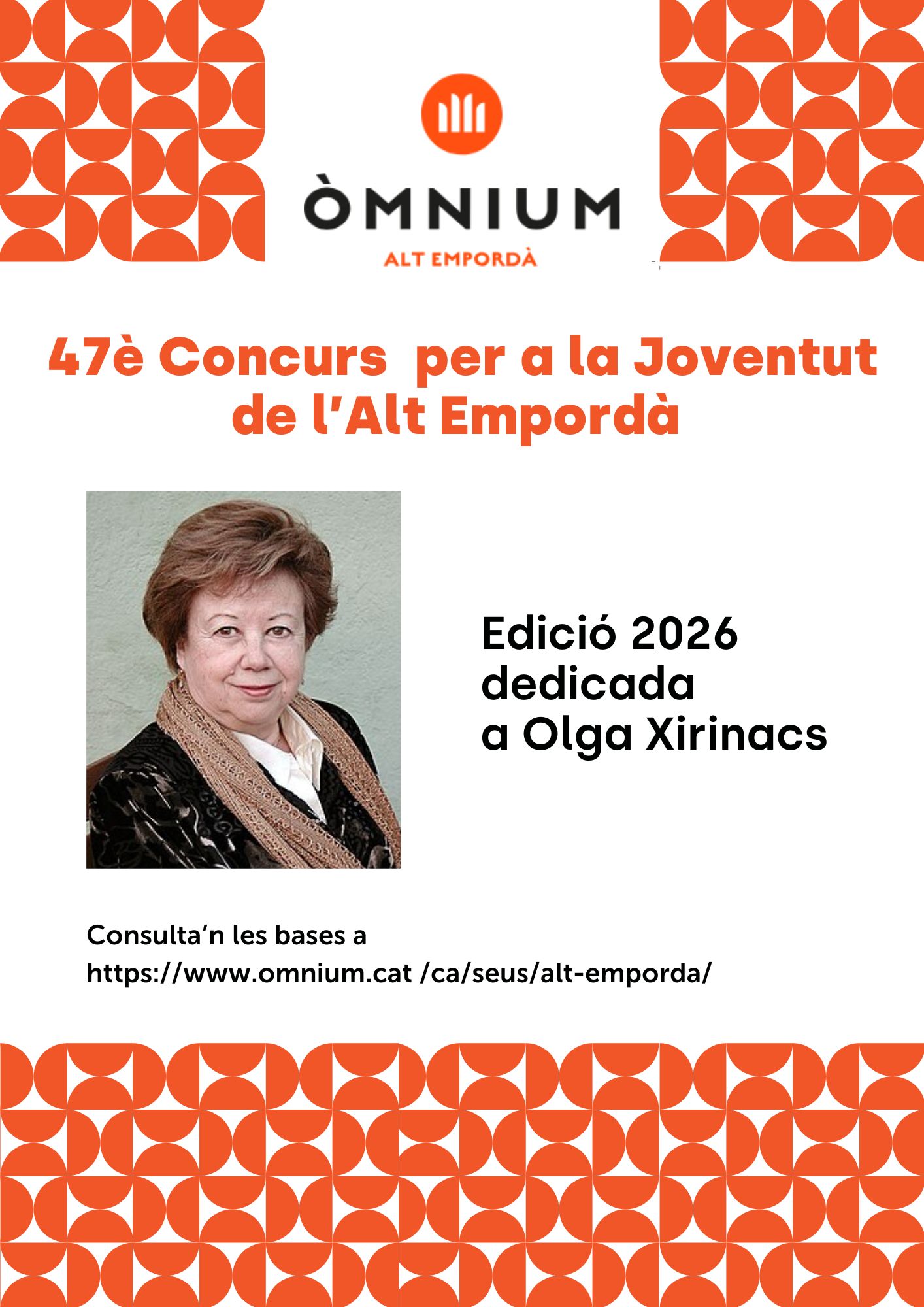 Obrim, un any més, les inscripcions per participar al Concurs per a la Joventut. En aquesta 47ena edició homenatgem la figura d’Olga Xirinacs (Tarragona, 1936),una de les escriptores més prolífiques de la llengua catalana.