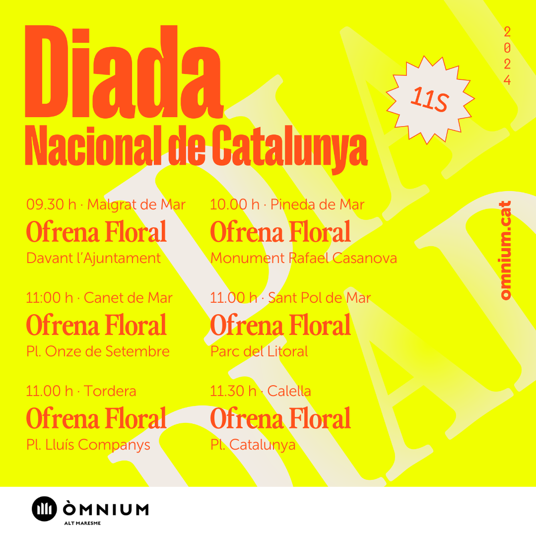 A moltes poblacions de l’Alt Maresme es faran diversos actes amb motiu de la Diada Nacional de Catalunya on l’entitat serà present. Aquí tens tota la informació disponible: