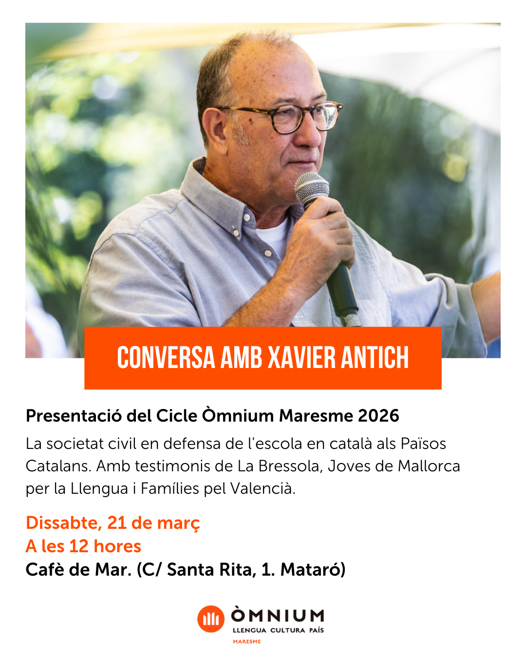 Conversa amb Xavier Antich. Presentació del Cicle Òmnium Maresme 2026