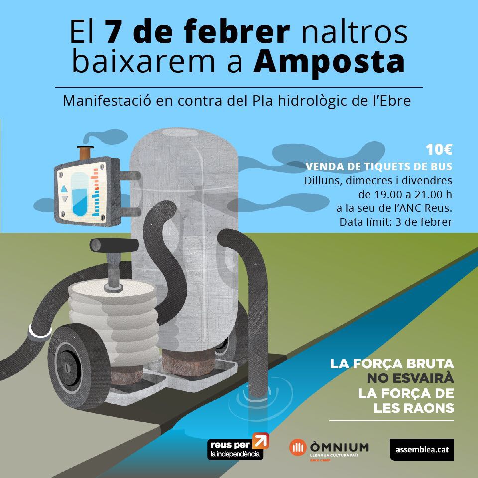 Per això cal sortir al carrer a manifestar-se. El dia 7 de febrer al matí, la Plataforma en Defensa de l’Ebre organitza una gran manifestació a Amposta i demanen a tots els catalans que hi baixem per a donar suport a l’Ebre i contra les imposicions.