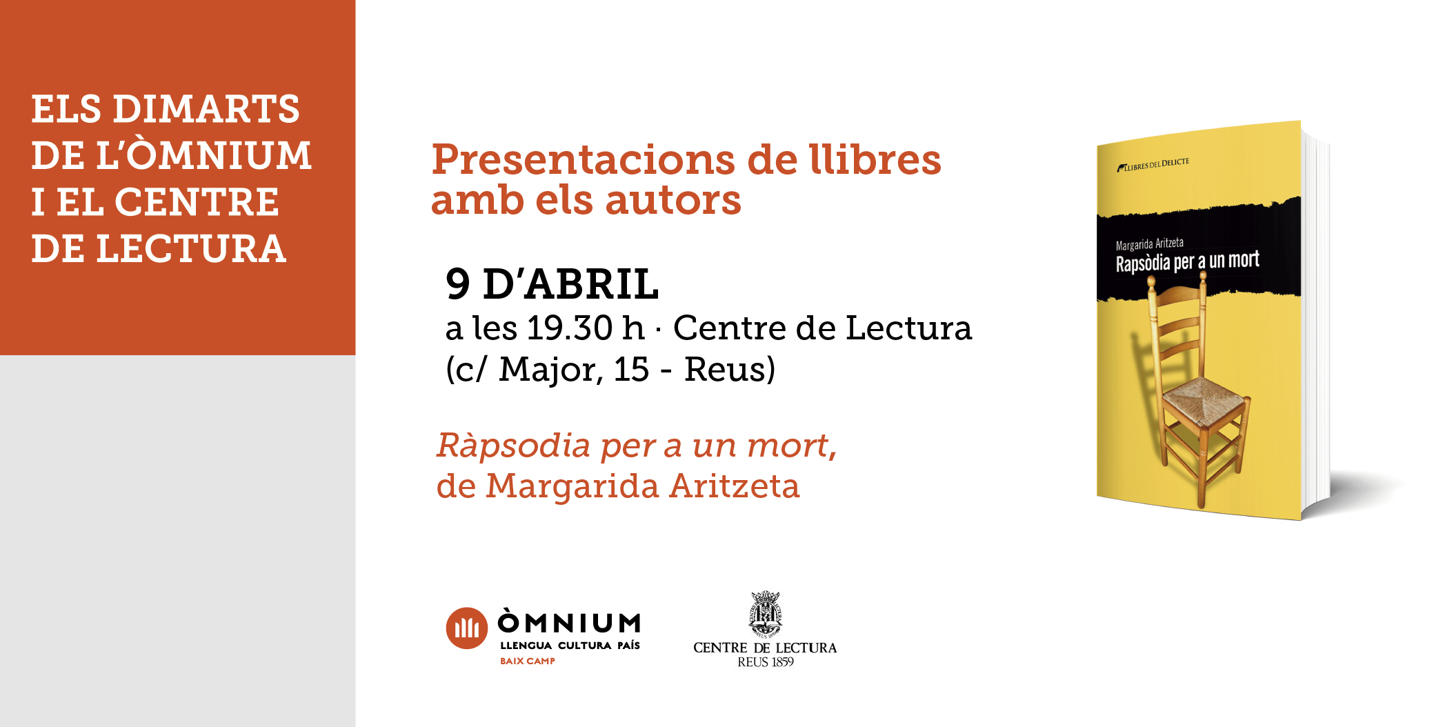 Us ve de gust una novel·la de crims? Els Dimarts d’Òmnium Baix Camp i el Centre de Lectura us proposen conèixer la nova novel.la de Margarida Aritzeta, “Rapsòdia per a un mort”, de la mà de la seva autora.