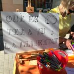 Per una banda, vam demanar als nostres visitants que ens escrivissin o ens dibuixessin què és per a ells la llibertat. El recull de textos i dibuixos seran exposats durant uns dies al nostre aparador que aquests dies també mostra una esplèndida decoració al voltant de Sant Jordi, la lectura i la llibertat. També vam aprofitar per explicar els projectes actuals i les futures activitats que tenim en marxa.