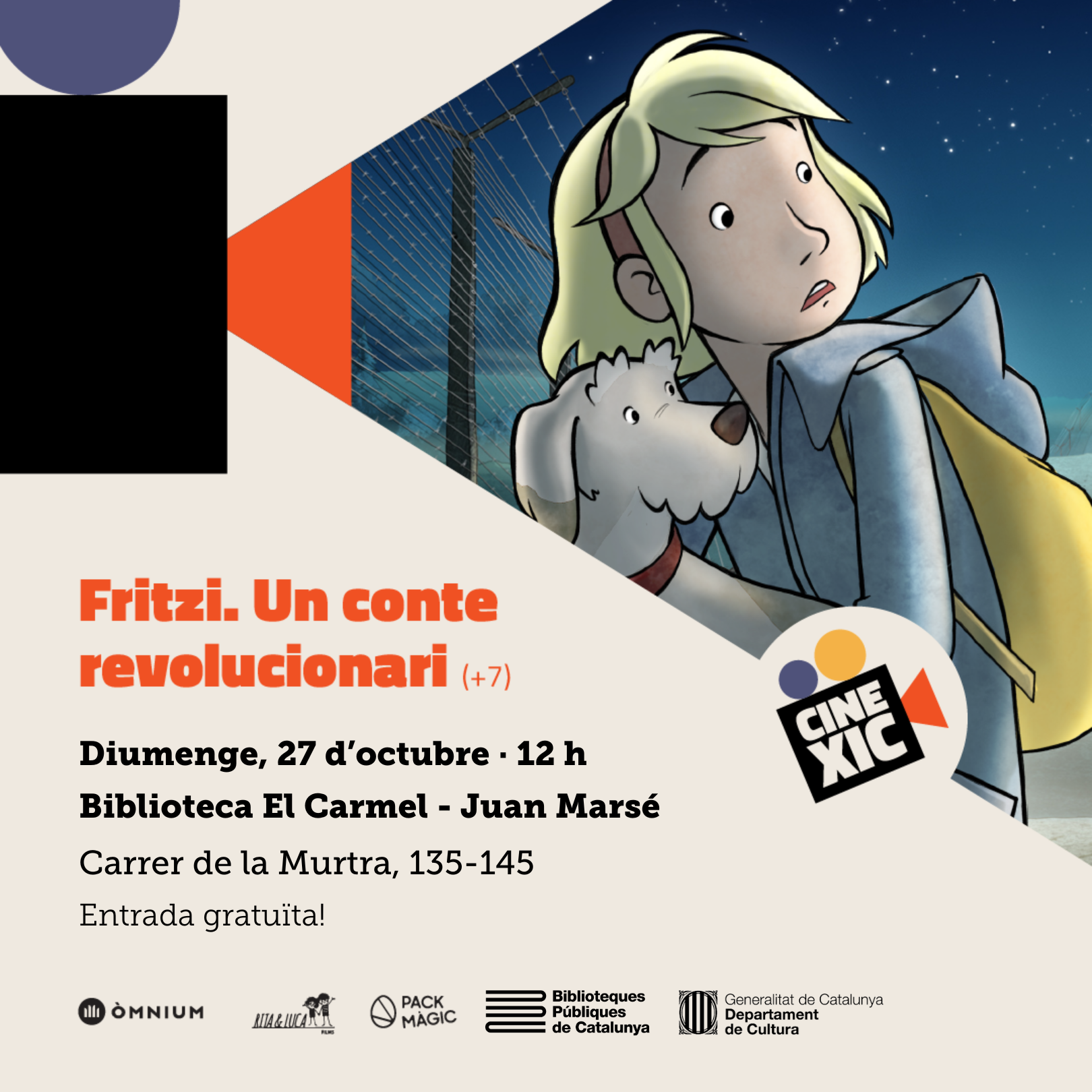 Aquest octubre comença un altre cop el CineXic a Horta-Guinardó, el millor cinema infantil en català! La programació d’aquest mes és la pel·lícula “Fritzi: un conte revolucionari”, recomandada a partir de 7 anys.