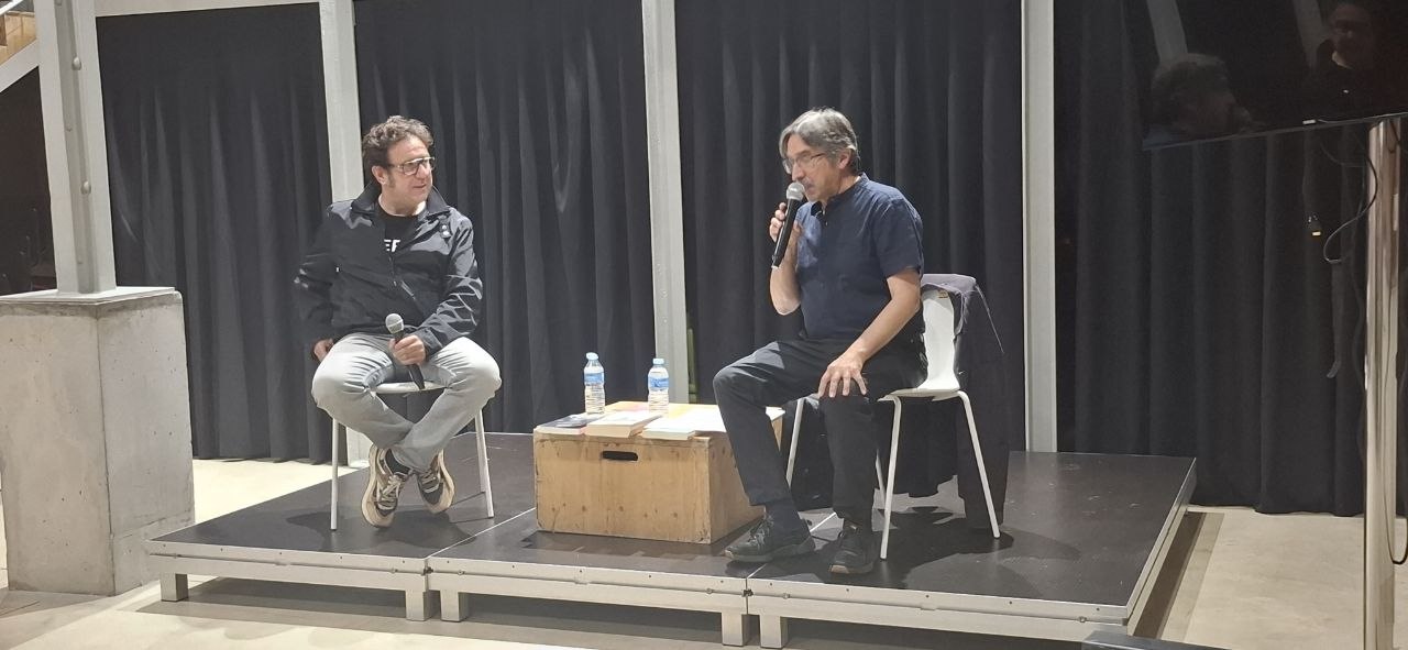 El 14 d’octubre vam iniciar «Lectures valencianes. Renàixer del fang i de les cendres», un club de lectura solidari per fer suport a les llibreries afectades per la Dana. Malgrat una nova Dana, la de les Terres de l’Ebre, Rafa Lahuerta, el premiat autor de ‘Noruega’, va poder arribar a Sants i compartir amb Rafel Casas la més que interessant sessió inaugural a La Lleialtat Santsenca amb lectors i lectores.