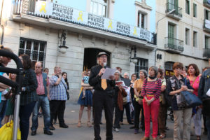 L’actor Pep Planas va llegir una carta que Jordi Cuixart ens ha adreçat a tots els qui ens concentrem cada dilluns a la plaça de la Vila de Gràcia, en resposta a la carta i al llibre que li vàrem enviar, com a la resta de presos polítics, per Sant Jordi.