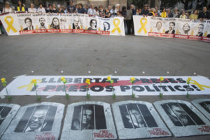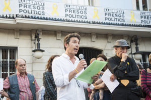 Quan tot just havíem començat els cinc minuts de silenci amb què sempre iniciem les nostres concentracions, Jordi Cuixart va trucar, des de la presó de Soto del Real, la seva parella, Txell Bonet, que era amb nosaltres a la plaça de la Vila. El president d’Òmnium Cultural va demanar que la conductora de l’acte expliqués la situació. En fer-ho, els assistents vàrem clamar «llibertat, llibertat» amb una emoció molt especial, sabent que un dels nostres presos polítics ens estava escoltant.