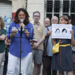 Tenint en compte que el mateix dilluns, abans del nostre acte, hi havia hagut una manifestació de suport a l’Adrià Carrasco, l’exiliat del CDR d’Esplugues de Llobregat, nosaltres ens hi vàrem voler sumar tot llegint un comunicat seu. Ho va fer l’actriu i cantant Txell Sota.