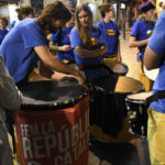Amb la força dels tambors del grup Kabum, Gràcia va fer costat, un dilluns més, als presos, exiliats i encausats.