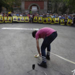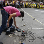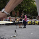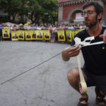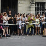 Després, Llapispanc, artista visual i sonor, va presentar una performance site-specific, titulada Aquest temps que ens ve al damunt, en què ens volen com ens volen, però on resistim com en un lloc sonor amb reverberació i realimentació de distorsió per a cinta i micròfons de contacte. Amb la col·laboració d’algunes de les persones presents a la plaça, Llapispanc, que fa un treball experimental a partir del que ell mateix anomena so-soroll, va elaborar un llaç groc amb cinta de pintor, pedals i micròfons, amb l’objectiu, va dir, de fer un llaç groc que no es pogués esborrar.