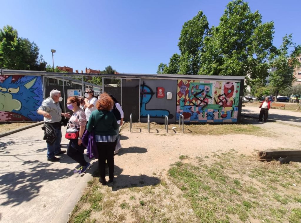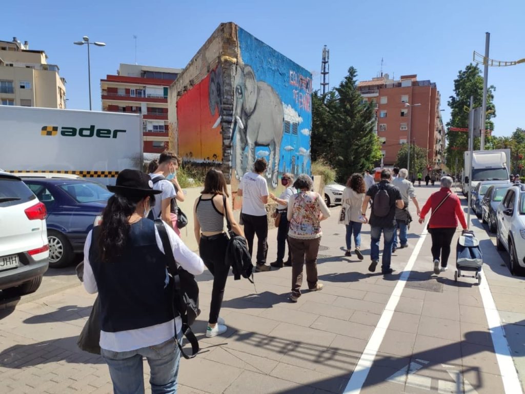 Una quinzena d’assistents van recórrer el barri acompanyats del guia i d’en Joan, membre de la comissió veïnal, que va donar el seu testimoni i va mostrar el seu profund coneixement del barri. Gràcies a ell, els participants van poder conèixer la història del barri i diversos episodis que van tenir lloc als seus carrers i places. També van tenir l’ocasió de visitar el Casal de joves, on alguns dels seus membres van explicar els projectes en els quals treballen actualment.