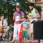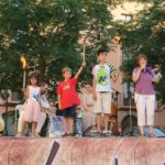 A la tarda, ens vam desplaçar a la plaça Pati Palau on vam oferir berenar i els més petits van poder gaudir de l’espectacle infantil «Jugant amb els instruments» a càrrec de Joan Baró. A continuació, Meritxell Bellmunt, membre de la junta d’Òmnium Alt Urgell, va homenatjar l’escriptora Isabel-Clara Simó. La Flama del Correllengua va arribar a l’escenari amb el Lluc Grané acompanyat de varis nens del públic i en Joan Porras (Joan BonaNit) va ser l’encarregat de llegir el Manifest d’enguany.