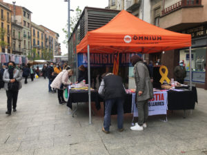 El passat cap de setmana 10 i 11 d’abril, malgrat la incertesa del temps, vam tornar a participar en una marató de parades d’Òmnium Cultural amb la voluntat de recollir signatures pro llei d’amnistia per a les persones preses, exiliades i inculpades relacionades amb el procés sobiranista de Catalunya. Aquest 16 d‘abril fa 3 anys i sis mesos que Jordi Cuixart i Jordi Sánchez son a la presó injustament.