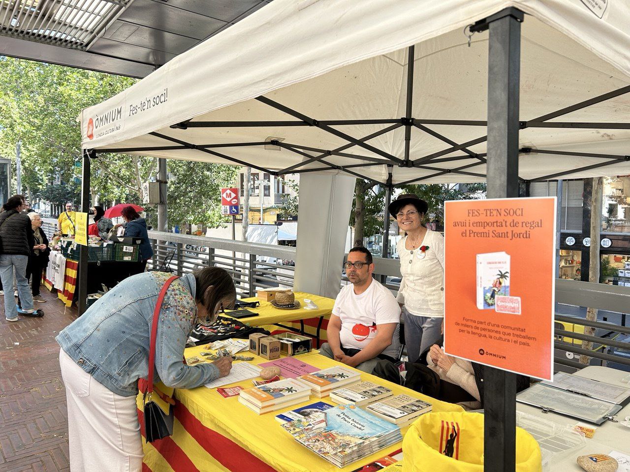 Un any mes, Òmnium Nou Barris hem celebrat la diada de Sant Jordi amb una paradeta a la marquesina de la Via Júlia. Enguany, hem impulsat la campanya Català per a tothom amb una recollida de signatures, i hem donat a conèixer els nostres projectes que duem a terme al llarg de l’any com el Vincles o el Sambori.