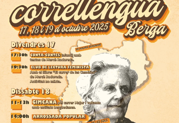 La capital berguedana es convertirà en el cor del Correllengua 2025 amb tres jornades intenses d’activitats del 17 al 19 d’octubre. Sota el lema “Vine a viure la festa de la llengua, la cultura i la reivindicació”, Berga oferirà una programació variada amb propostes per a totes les edats.