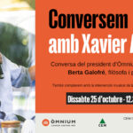 Finalitzada l’assemblea, i amb la sala plena de gom a gom per socis, simpatitzants i representants de la societat civil de la seu territorial, ha començat l’acte obert a tot el públic consistent en una conversa que la vicentina Berta Galofré, filòsofa i periodista, ha mantingut amb el president d’Òmnium Cultural Xavier Antich. Durant aquesta, Xavier Antich ha destacat que des de l’entitat es treballa per reconstruir la fortalesa de la societat civil al voltant de consensos sobre la llengua, la cultura i el país, uns eixos on en aquests moments hi ha coses que no funcionen. També ha afegit que fa més de 300 anys que Catalunya no està pacificada ni normalitzada. No hi ha normalitat amb polítics exiliats, amb una justícia que no aplica la llei d’amnistia o uns jutges que decideixen sobre la llengua a les escoles.