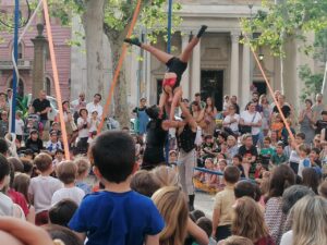 Després vam gaudir d’una magnífica tarda de circ amb el grup Kanaya Circ, grup compost per dos nois i una noia i que ens van presentar diversos números fent allò de l’”encara més difícil” que van fer que petits i grans, que omplien la plaça de la Bonanova, aplaudissin amb moltes ganes. L’espectacle va ser presentat pel Mag Stigman que amb els seus jocs de màgia, els seus malabars i els seus balls, va fer que tots gaudissin d’aquest inici de la festa.