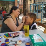 A la plaça Comas la tarda va començar amb uns tallers previs: pintar cares, penjar la cua al ruc, jocs de cucanya, crea la teva bossa de romaní i pinta i construeix el teu fanalet que dinamitzaven les Ampas Unides de Les Corts i el taller de percussió amb Els Bocs de Can Rosés.