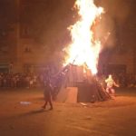 A continuació els tabalers dels Bocs de Can Rosés i dels Diables i Timbalers d’Itaca darrere la Flama del Canigó van començar a posar música al barri de camí a l’espai de la foguera que duu a terme l’Ateneu Popular de Les Corts des de fa set anys juntament amb Els Bocs de Can Rosés i que s’ha consolidat com l’espai popular de celebració de la revetlla de Sant Joan a Les Corts. Un cop allà Òmnium va repartir coca i moscatell, la coca venia directament del forn de La Trufa.