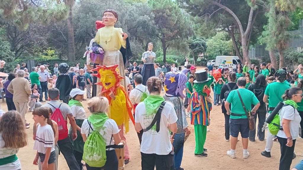 Dissabte 18 va ser l’acte central al parc de les aigües. Petits i grans ens vam posar a prova amb els jocs gegants de la ludoteca “La Guineu”, vam participar dels tallers de capgrossos i maraques i els tabalers i gegants de les escoles Àngels Garriga, Arc Iris, Parc del Guinardó, del Mar i Xerrac van animar la festa, l’arribada de la Flama i la lectura del manifest.