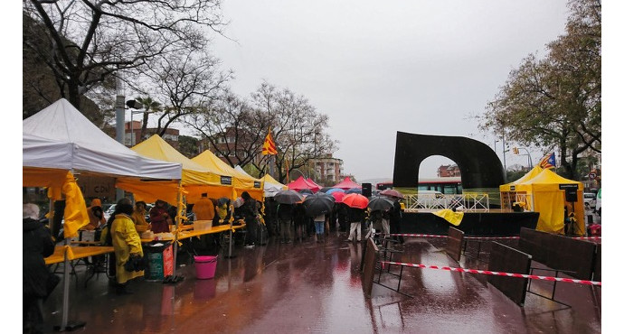 Dissabte 14, dia de la proclamació de la República, era prevista una llarga jornada groga solidària a la Porta de Sarrià organitzada conjuntament entre les entitats i els partits del districte.
