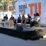 L’acte de la campanya Demà Pots Ser Tu a Sant Martí va començar pocs minuts després de dos quarts de vuit amb els convidats Gemma Ubasart, Jordi Pesarrodona, Guillermo Martínez-Vela, Simona Levi, Pepe Beúnza i Marcel Mauri damunt la tarima. La moderadora, Laura Aznar, va facilitar que els convidats desgranessin les seves experiències relacionades amb la situació que vivim actualment de pèrdua de llibertats produïda per l’acció repressora de l’Estat que coarta, des de diferents fronts, les nostres llibertats.