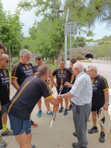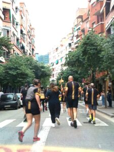 Enmig d’un recital poètic musicat -pels rapsodes Lourdes Vidrier, Yohany Limpias, Josep Maria Pérez, Josep Sicart i Enric Subirà- el públic expectant va acomiadar atletes i patinadors que sortiren a cercar el foc sagrat procedent de la plaça Sant Jaume i que ens el portaren al cor del barri escoltats per la Guàrdia Urbana després de recórrer un llarg camí d’invitació.
