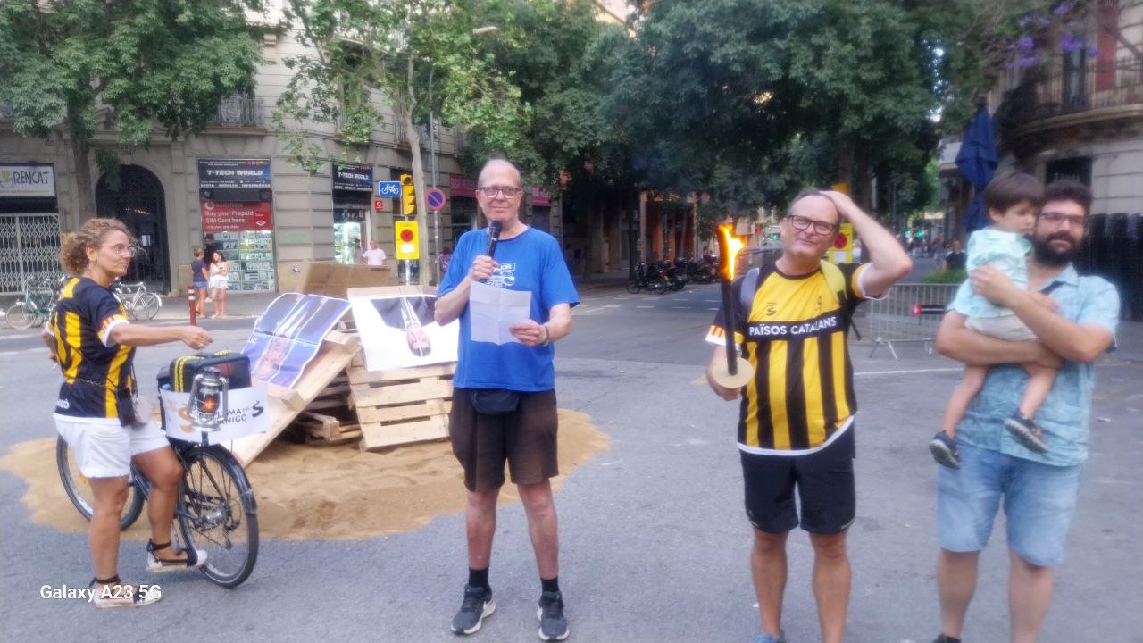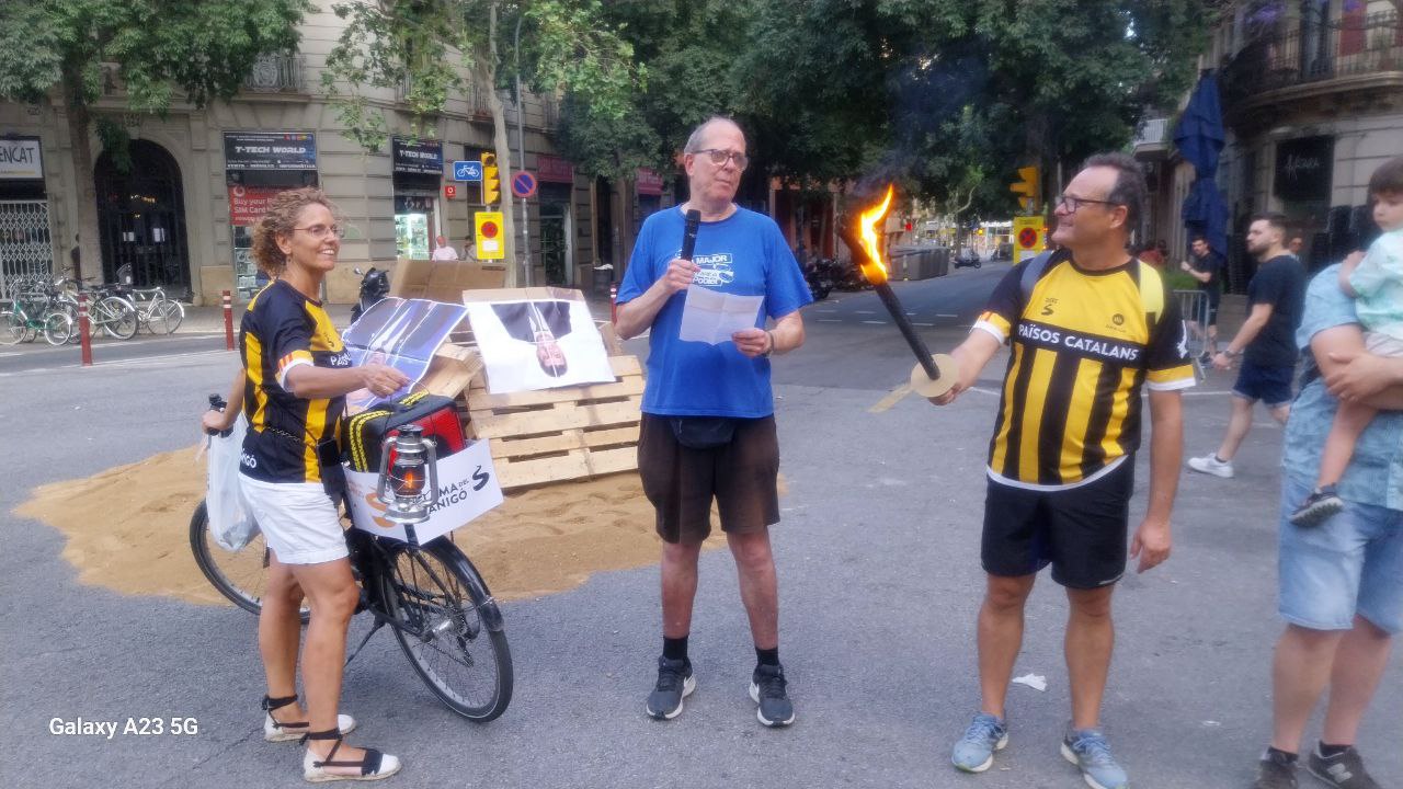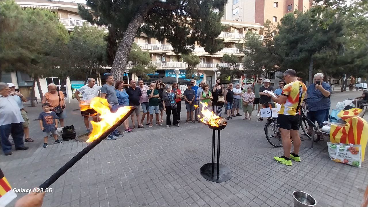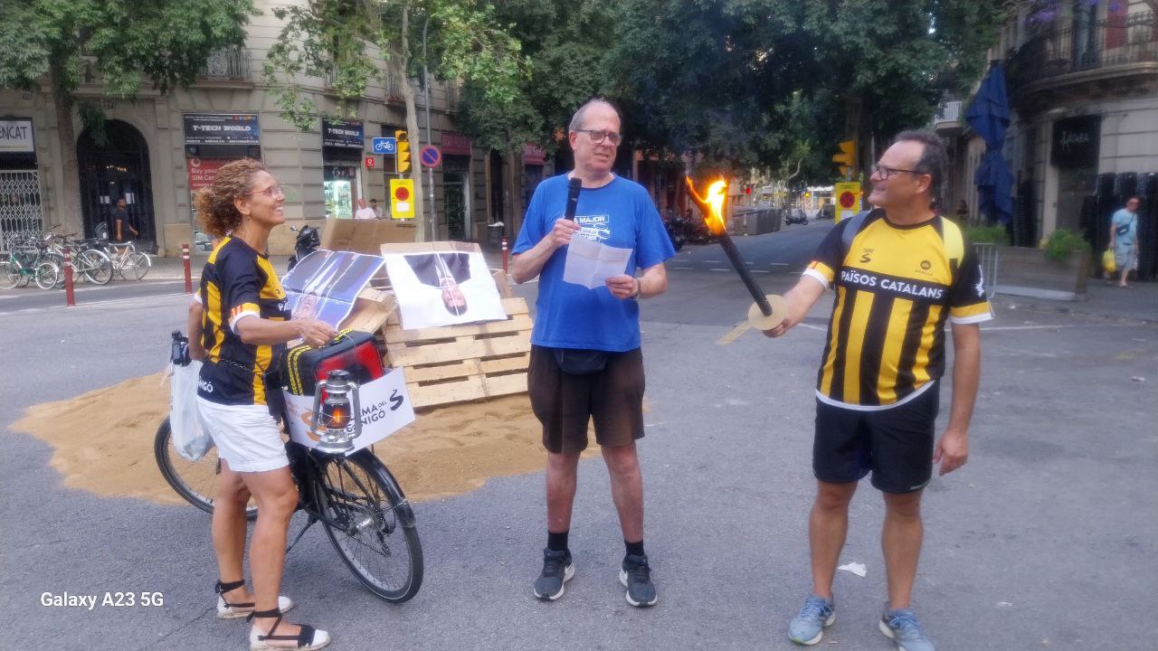 El dia 23 Òmnium Sant Martí va portar la Flama des de la Plaça de Sant Jaume fins a Can Saladrigas. Per entremig va encendre fogueres i peveters a diversos punts del districte. Al final, després d’encendre el peveter i de llegir el Manifest vam esperar la sortida de l’Au Fènix, que va ballar amb el foc sortit de la Flama. Finalment la corrua de la Colla del Drac va portar la Flama a la foguera que havien organitzat a la cruïlla Ramon Turró-Espronceda.
