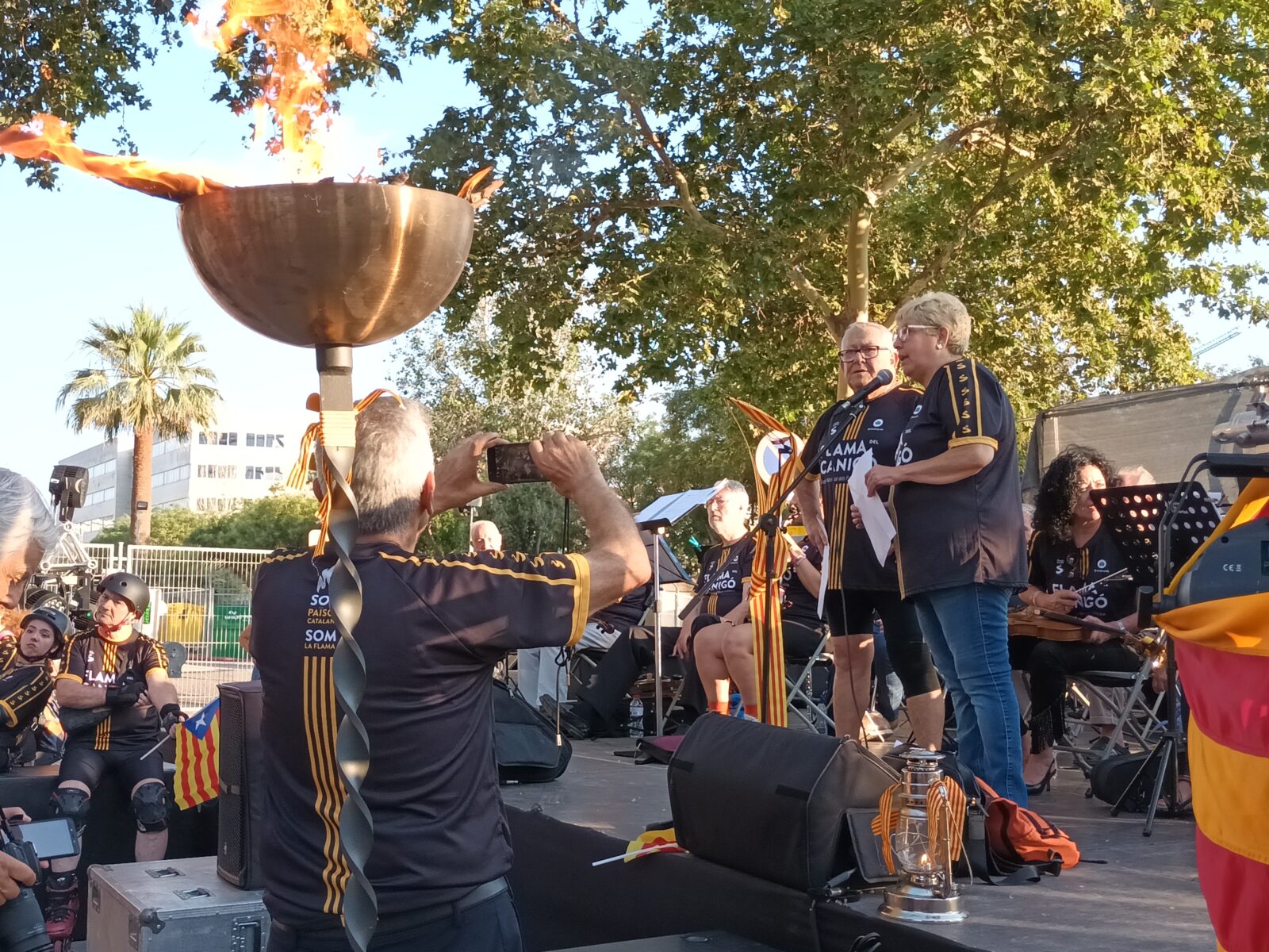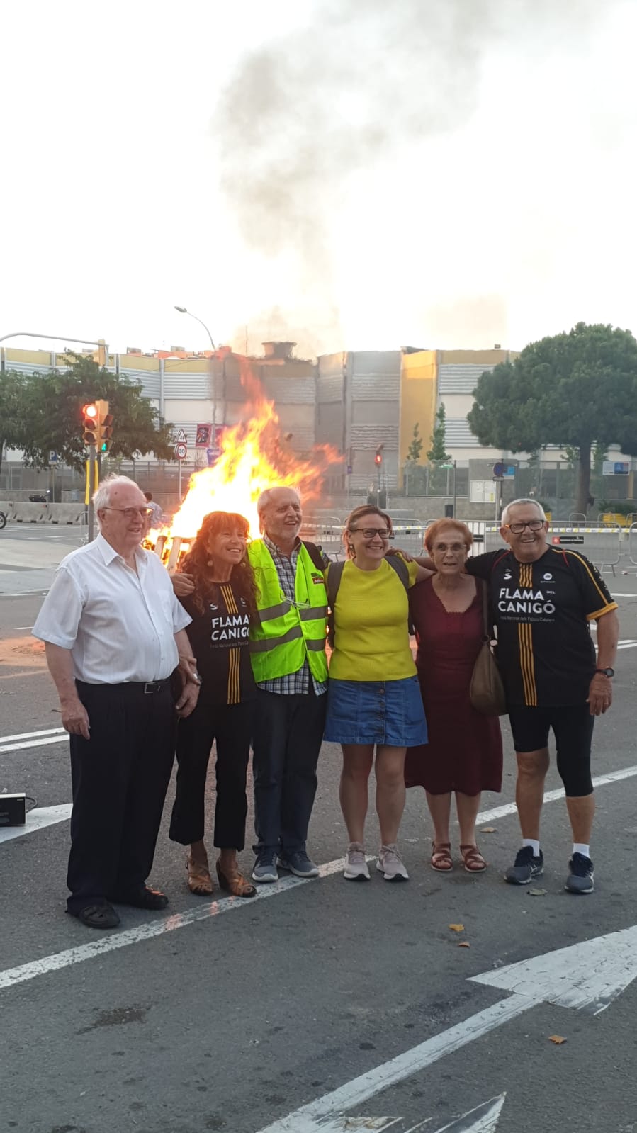 Celebrem l’arribada de la flama en un entranyable acte d’agraïment als que van dur aquesta celebració al barri de la Marina ara fa quaranta anys, amb la presència de quatre generacions i emocionats discursos als quals ja ens han deixat. Gràcies a l’Equip de Foc, als atletes i patinadors, als Músics per la Llibertat, a la Unió d’Entitats per fer possible que el foc del Canigó il·lumini i formi part de la festa major de la Marina.