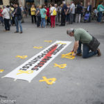 Prop de sis-centes persones ens vàrem aplegar a la plaça en la dissetena setmana del judici de la vergonya, amb la participació de Mireia Boya i Joan Josep Nuet, exdiputats encausats.