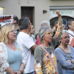 Prop de cinc-centes persones ens vàrem aplegar a la plaça en la divuitena setmana del judici de la vergonya, amb la participació de Mercè Otero-Vidal, activista i membre del col·lectiu Enriqueta Gallinat, Lloll Bertran, actriu i cantant, i Celdoni Fonoll, músic i poeta.