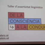 El taller era gratuït i va durar tot el matí, amb una pausa per esmorzar. Combinant teoria i treball per grups, els participants van sortir cada un amb el seu propòsit personal sistematitzat en una pauta escrita: “Trieu una persona en concret amb la que us hauria de costar molt poc començar a parlar-li en català. Planifiqueu quan ho fareu i com ho fareu: L’avisareu abans? Li demanareu l’opinió? Tirareu pel dret? En cas que decidiu avisar-la quina frase fareu servir? I finalment no aneu a cegues i preveniu la seva reacció. Com que aquella persona ja la coneixeu sabeu que no s’enfadarà, però, es posarà a riure? Fliparà? o potser ni s’adonarà que li esteu parlant en català? El comportament assertiu no és nou i tots, a la vida, l’hem hagut de posar en pràctica en moltes situacions. Quantes vegades no ens hem hagut de preparar abans per dir-li assertivament, per exemple, a un company de feina que no fumi on no ha de fumar, o per dir-li quelcom a la parella, o a un familiar”, va expressar el ponent.