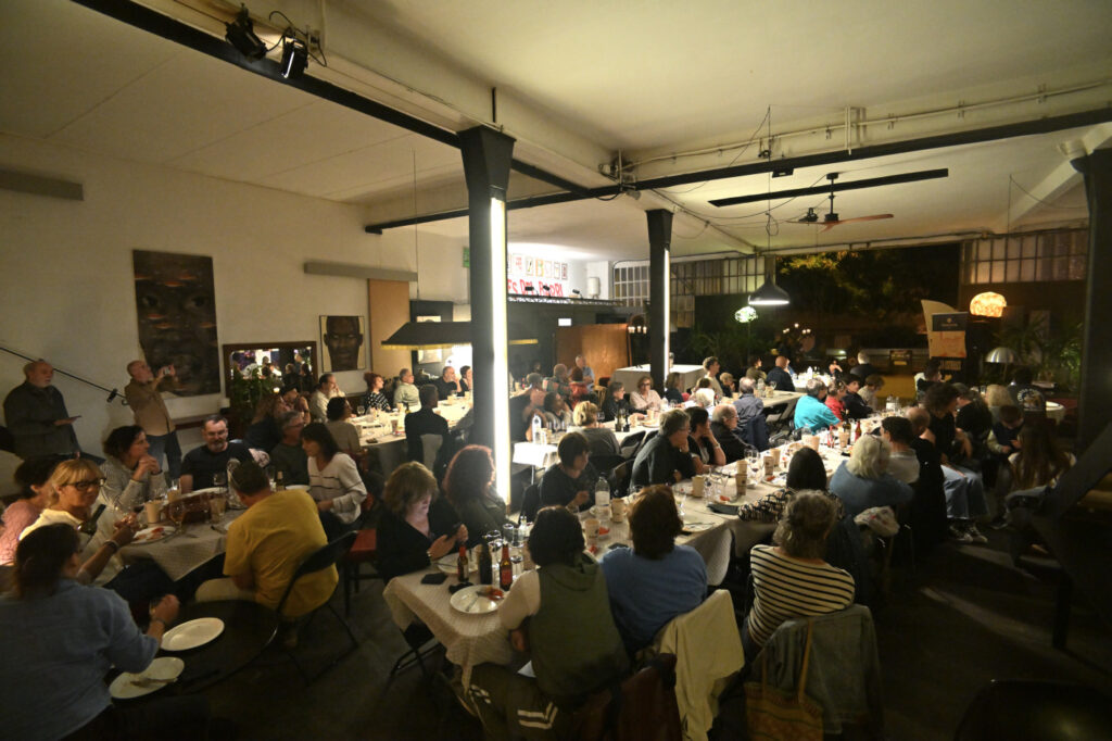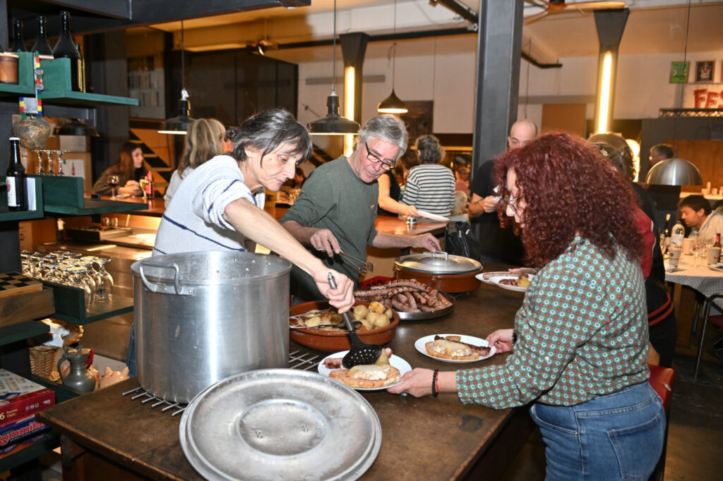 La vetllada va arrencar amb un sopar popular amenitzat amb l’actuació del cantant valencià Quim Sanç, que va interpretar diversos poemes musicats d’Estellés i d’altres autors. L’actuació de Quim Sanç va sorprendre gratament el públic, que en va destacar la proximitat i va expressar la voluntat de tornar-lo a escoltar en futurs actes. A més, entre cançons, el públic va tenir l’oportunitat de pujar a l’escenari i recitar una bona selecció de poemes del mestre de Burjassot, creant un ambient literari emotiu.