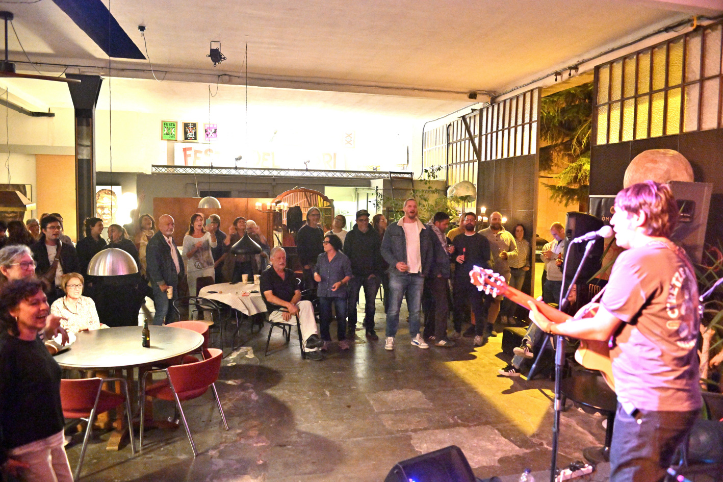 La vetllada va arrencar amb un sopar popular amenitzat amb l’actuació del cantant valencià Quim Sanç, que va interpretar diversos poemes musicats d’Estellés i d’altres autors. L’actuació de Quim Sanç va sorprendre gratament el públic, que en va destacar la proximitat i va expressar la voluntat de tornar-lo a escoltar en futurs actes. A més, entre cançons, el públic va tenir l’oportunitat de pujar a l’escenari i recitar una bona selecció de poemes del mestre de Burjassot, creant un ambient literari emotiu.