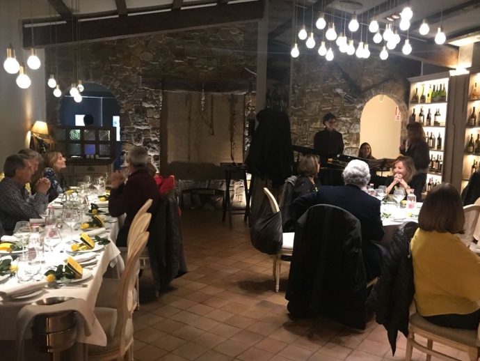 El dijous 12 d’abril va tenir lloc un entranyable sopar groc al restaurant La Ferreria organitzat per la junta gestora d’Òmnium Cultural Sarrià – Sant Gervasi amb l’objectiu de recaptar fons per als nostres presos i exiliats polítics.L’àpat va ser excel·lent i va estar amanit per l’actuació de Mar (veu) i Jaume (piano) Vilaseca. Ens van acompanyar Diana Riba, i Laura Masvidal, parelles de Raül Romeva i Joaquim Forn, respectivament, que ens van transmetre un gran coratge i voluntat de lluita, malgrat la cruel situació que estan vivint, essent un gran exemple pels assistents.