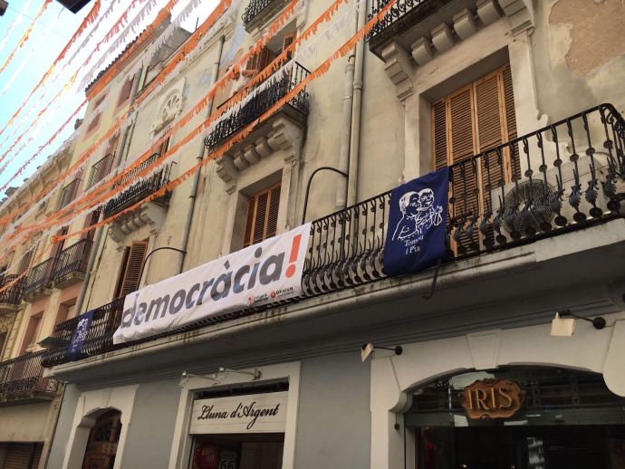 Durant la Festa Major d’Igualada, els carrers s’han omplert de Democràcia. Dins de la campanya “Crida per la Democràcia” s’han pogut veure pancartes en els actes més destacats de la festa.