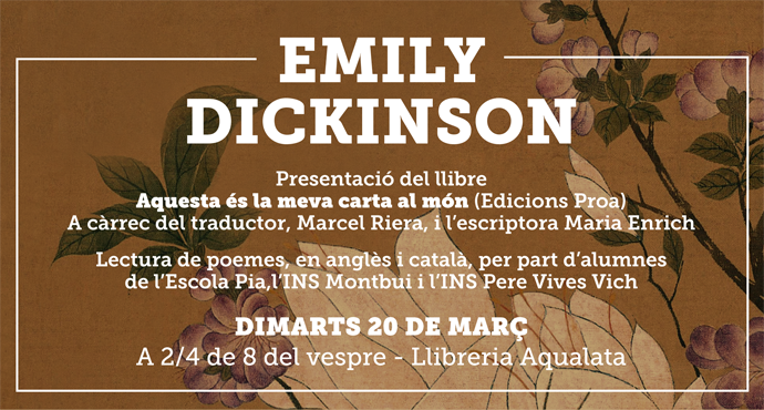 Presentació del llibre “Aquesta és la meva carta al món” d’Emily Dickinson (Edicions Proa) a càrrec del traductor, Marcel Riera, i l’escriptora Maria Enrich.