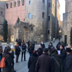 A les 10h30 ens vam trobar davant del Col·legi d’Arquitectes a la plaça Nova on el professor Jordi Buyreu ens va fer un recorregut oral per la història de la Barcelona antiga, les vies romanes que encara marquen la geografia urbana, les tres muralles que va tenir Barcelona fins a mitjans del segle XIX, la connivència entre poder civil i eclesiàstic immortalitzada al carrer del Bisbe, el llegat únic en el món del Born… De mica en mica anàvem entenent com cada esdeveniment, fins i tot del segle XXI, és en realitat una baula d’una successió inacabable de causes i conseqüències.