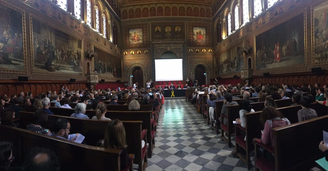 El Congrés Català en Defensa de l’Estat de Dret va néixer com un espai de reflexió i denúncia davant la vulneració de drets fonamentals arran de la repressió política a Catalunya. El primer congrés, celebrat el 2018 al Paranimf de la Universitat de Barcelona, va reunir entitats jurídiques, socials i de defensa dels drets humans —entre elles Òmnium Cultural— per alertar sobre la pèrdua de separació de poders i la persecució de drets com la llibertat d’expressió i de representació política.
